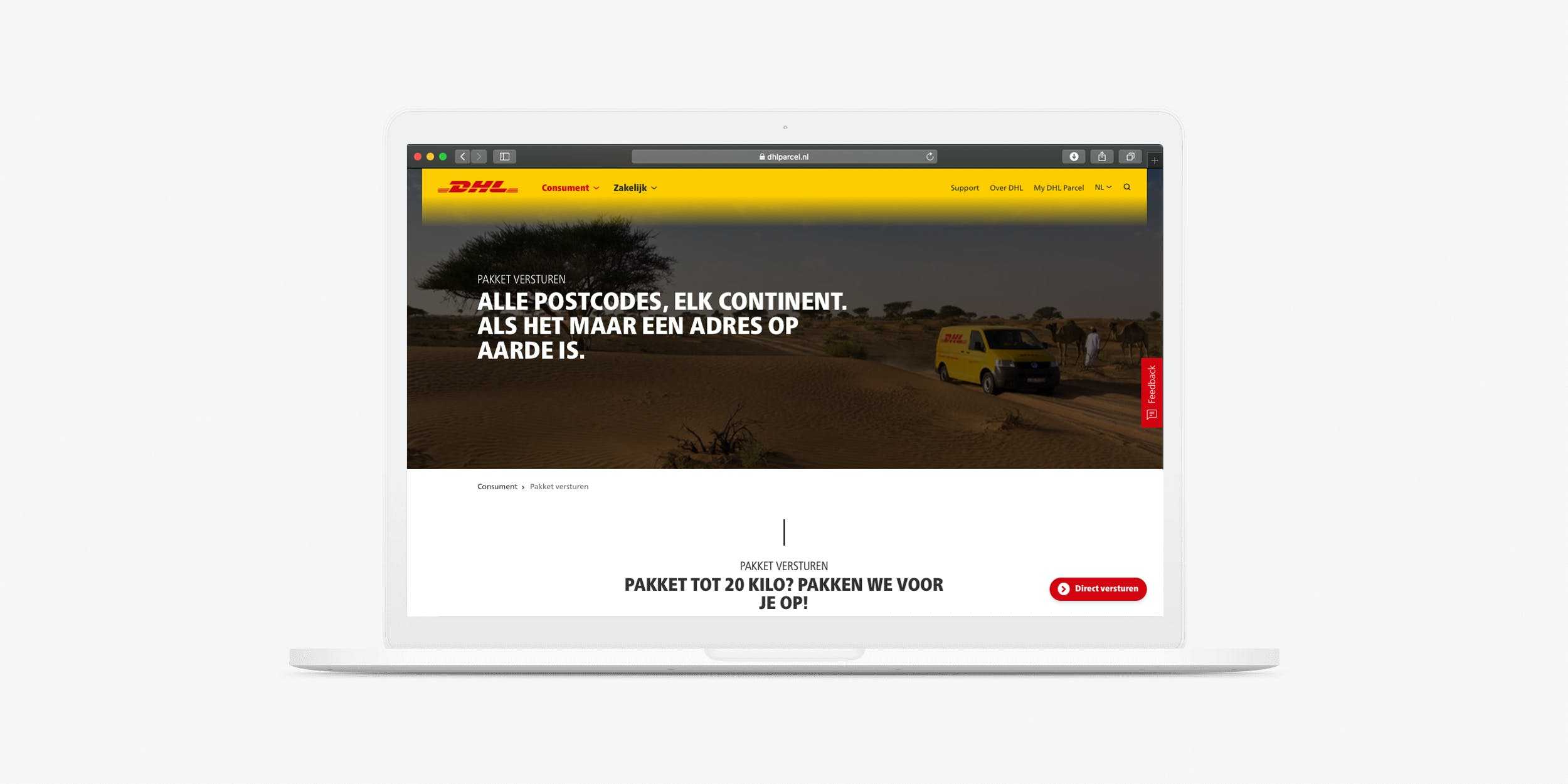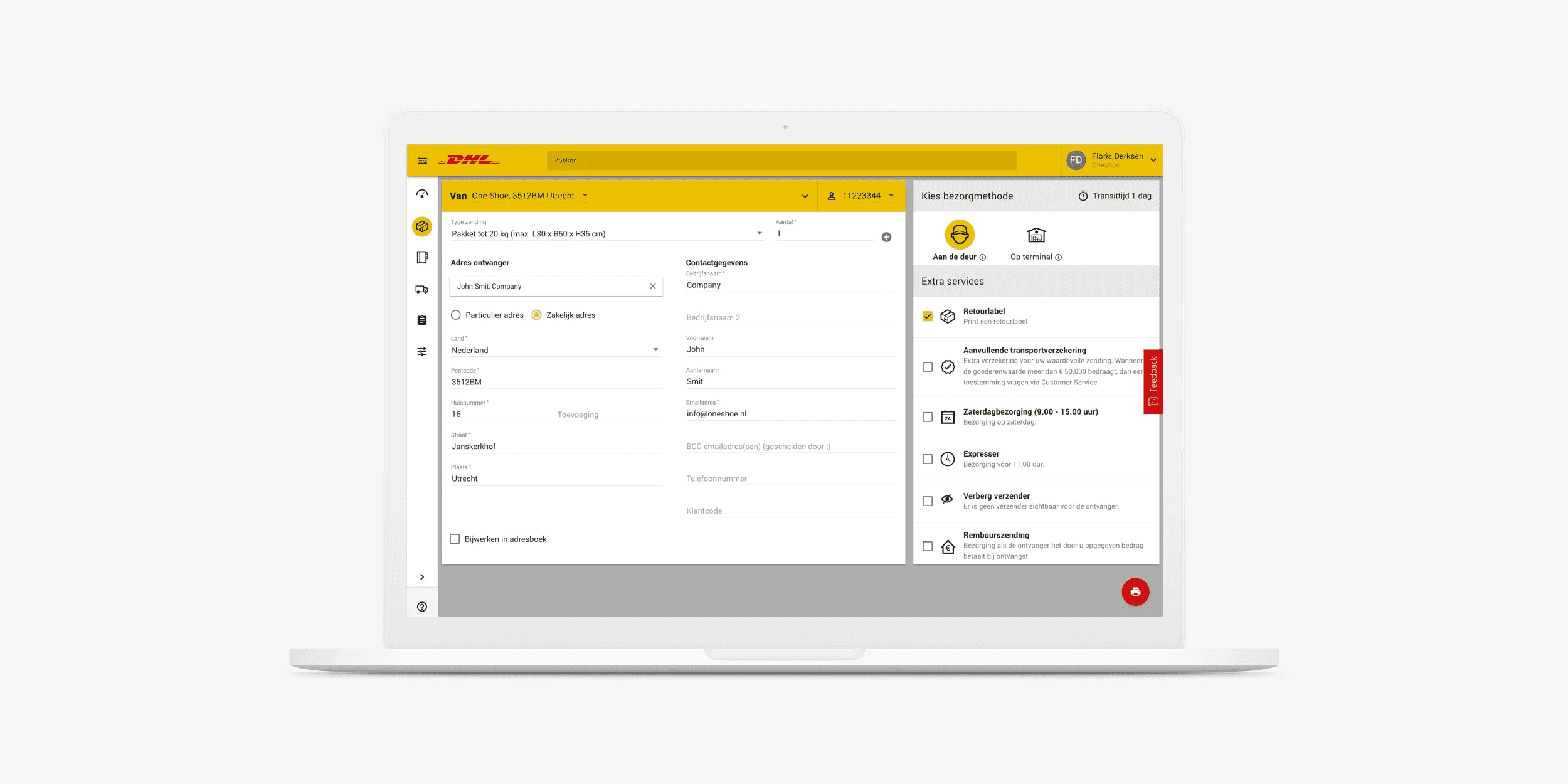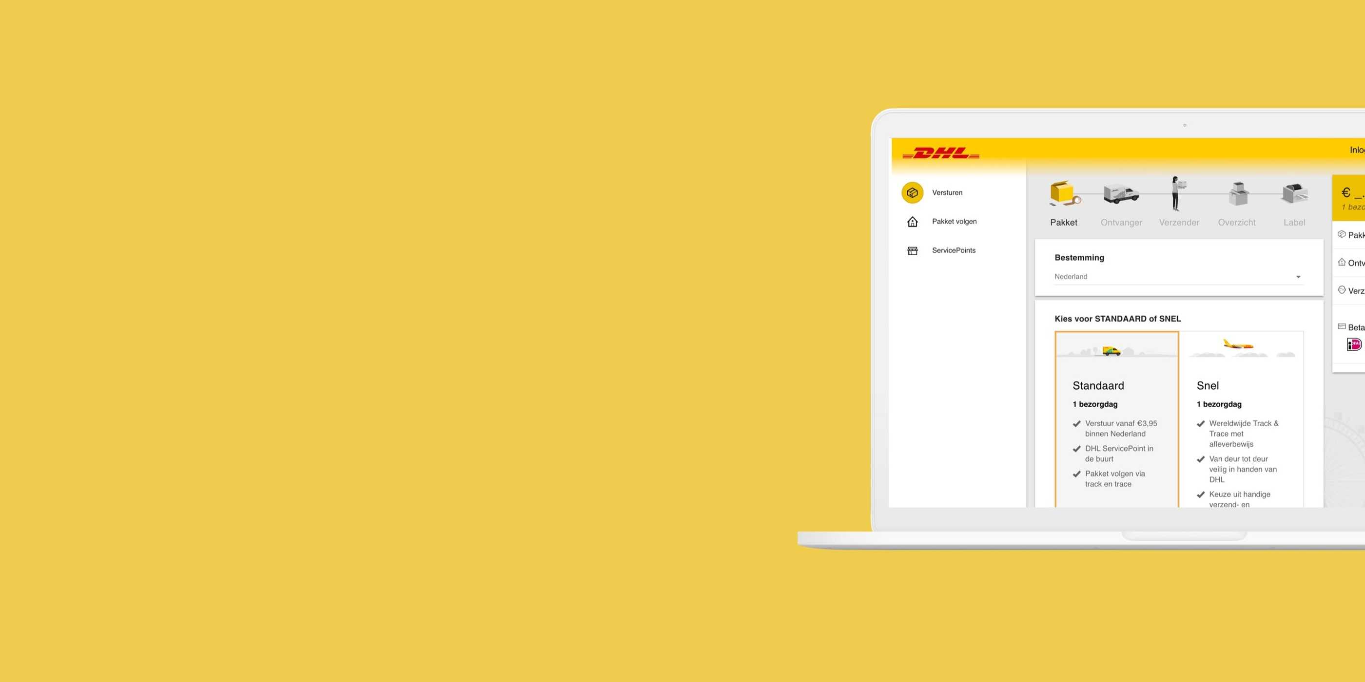 De wereld van logistiek en pakketvervoer wordt vanwege de groei in e-commerce steeds intensiever en complexer. Voorheen beschikte DHL Parcel over uiteenlopende tooling voor webshops en bedrijven die veel pakketten en pallets verzenden. Aan ons de uitdaging om een oplossing te ontwikkelen waarmee alle bestaande DHL-producten werden geïntegreerd in één gebruiksvriendelijke verzendservice, zodat zakelijke zenders eenvoudig en intuïtief grote aantallen pakketten kunnen verzenden.
